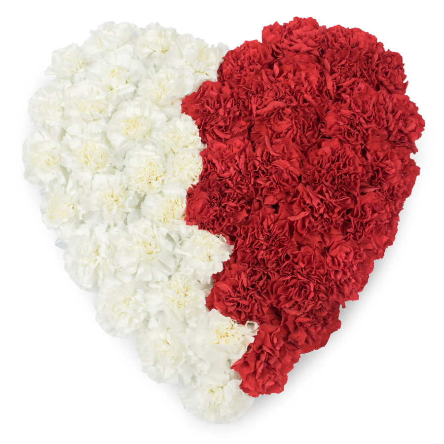 Embrace timeless elegance with our heart-shaped arrangement featuring striking white and red carnations. Each blossom is meticulously hand-picked to guarantee freshness and a lasting impression. This luxurious bouquet is designed to express deep emotions in a refined manner.