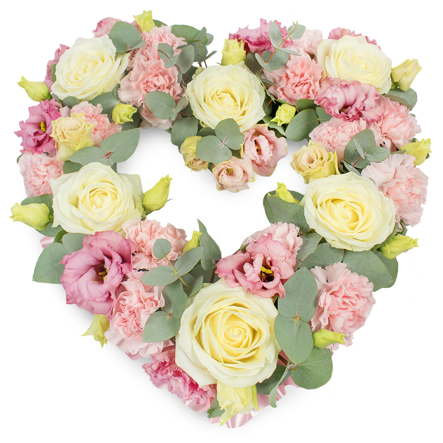 Celebrate cherished memories with our stunning open heart bouquet. This exquisite arrangement features hand-selected white roses, vibrant pink carnations, delicate pink lisianthus, and lush eucalyptus leaves, creating a harmonious blend of colors and textures.